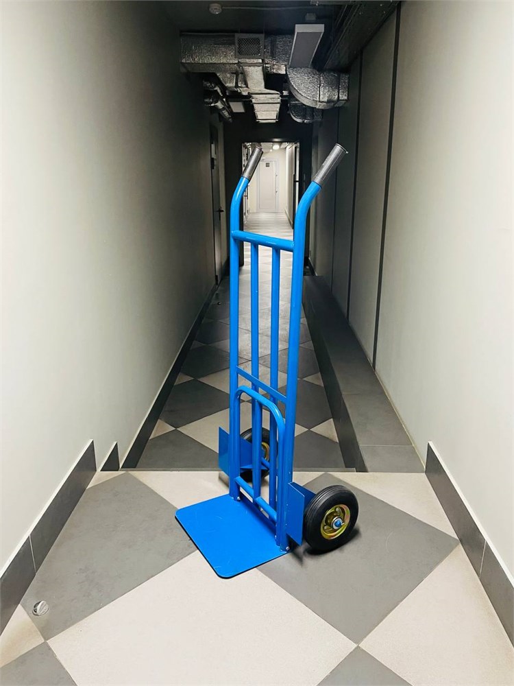 Тележка оборудована дополнительной раскладывающейся опорой для перевозки более габаритного груза. Хранить тележку можно в кладовке или гараже, и она не займет много пространства. Прочная и надежная — тележка станет незаменимым помощником для работников склада, в быту, при переезде, на даче и т.д.