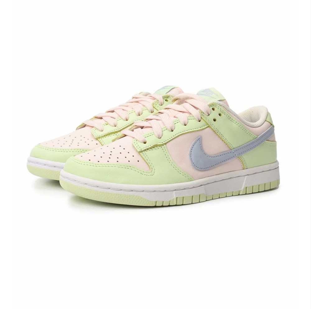 - Женские кроссовки Wmns Nike Dunk Low Lime Ice выполнены в контрастных пастельных тонах. Кожаный верх сочетает приглушенно-розовую основу с яркими лаймово-зелеными накладками и фирменным логотипом Swoosh. Стандартные элементы Dunk Low включают перфорированный носок, низкий верх на текстильной подкладке и язычок из нейлона.