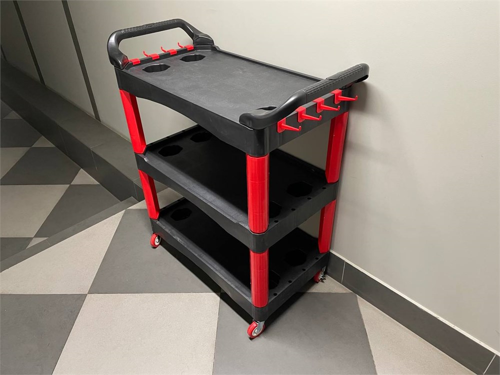 Тележка предназначена для компактного хранения и удобной транспортировки инструментов до места проведения работ. Идеальна для детейлинг-центров, также применяется на СТО и слесарных постах.